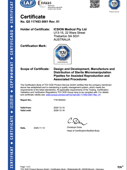 ICSION complies with EN ISO 13485:2016 and is accredited by TÜV SÜD Product Service GmbH.